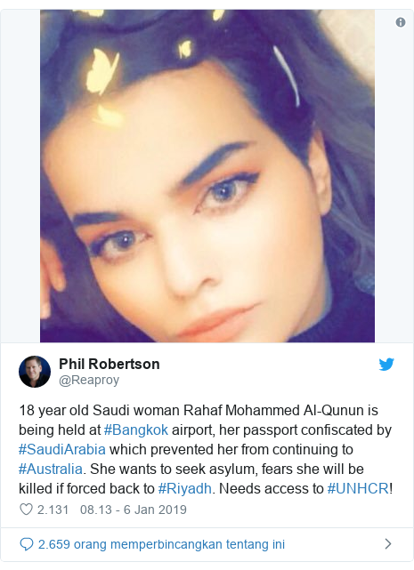 0 Komentar Rahaf Mohammed Al Qunun Kabur Mengaku Murtad Dan Diselamatkan Twitter